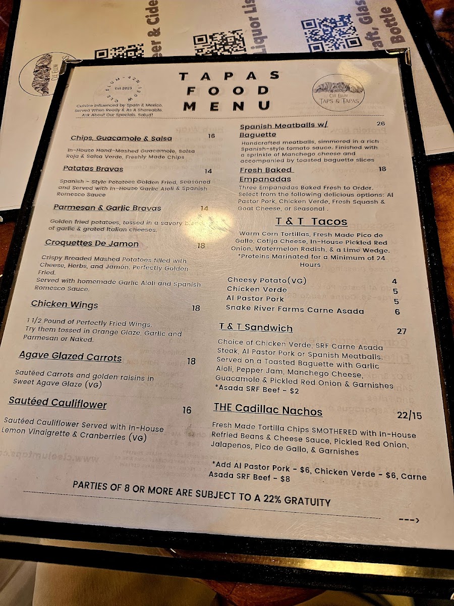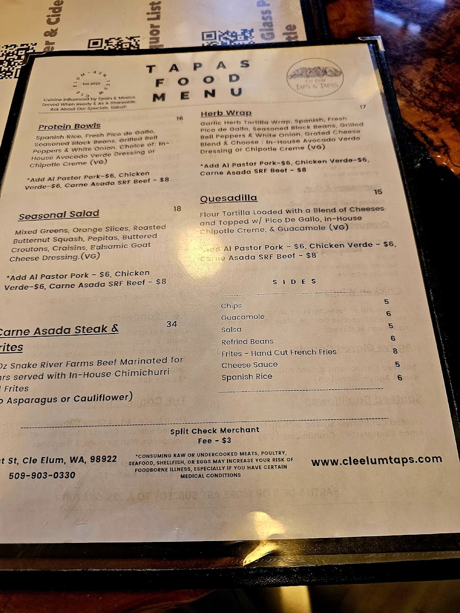 Located at 311 E 1st St, Cle Elum Taps & Tapas invites you to experience a delightful fusion of flavors and ambiance. The menu showcases a variety of delectable dishes that highlight Mexican cuisine, with standout items like the Chorizo Empanada and Al Pastor Street Tacos, known for their fresh ingredients and vibrant flavors.