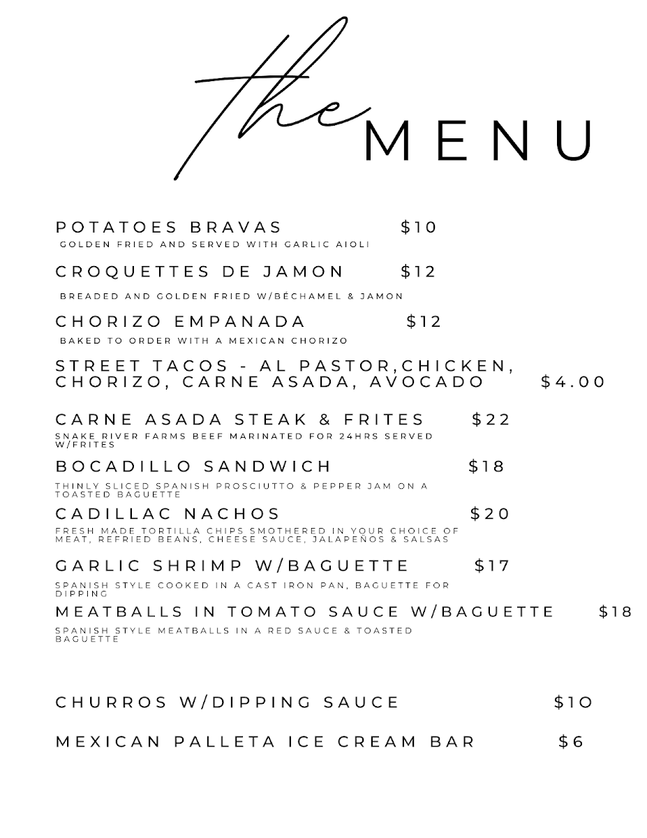Each dish is crafted with care, reflecting a commitment to culinary excellence. The Potatoes Bravas, praised for their intense preparation, and the Garlic Shrimp promise to elevate your dining experience. Pair your meal with one of their libation legends, such as the Mountain Man or Smoke & Mirrors cocktails, designed to complement the bold tastes of the menu.